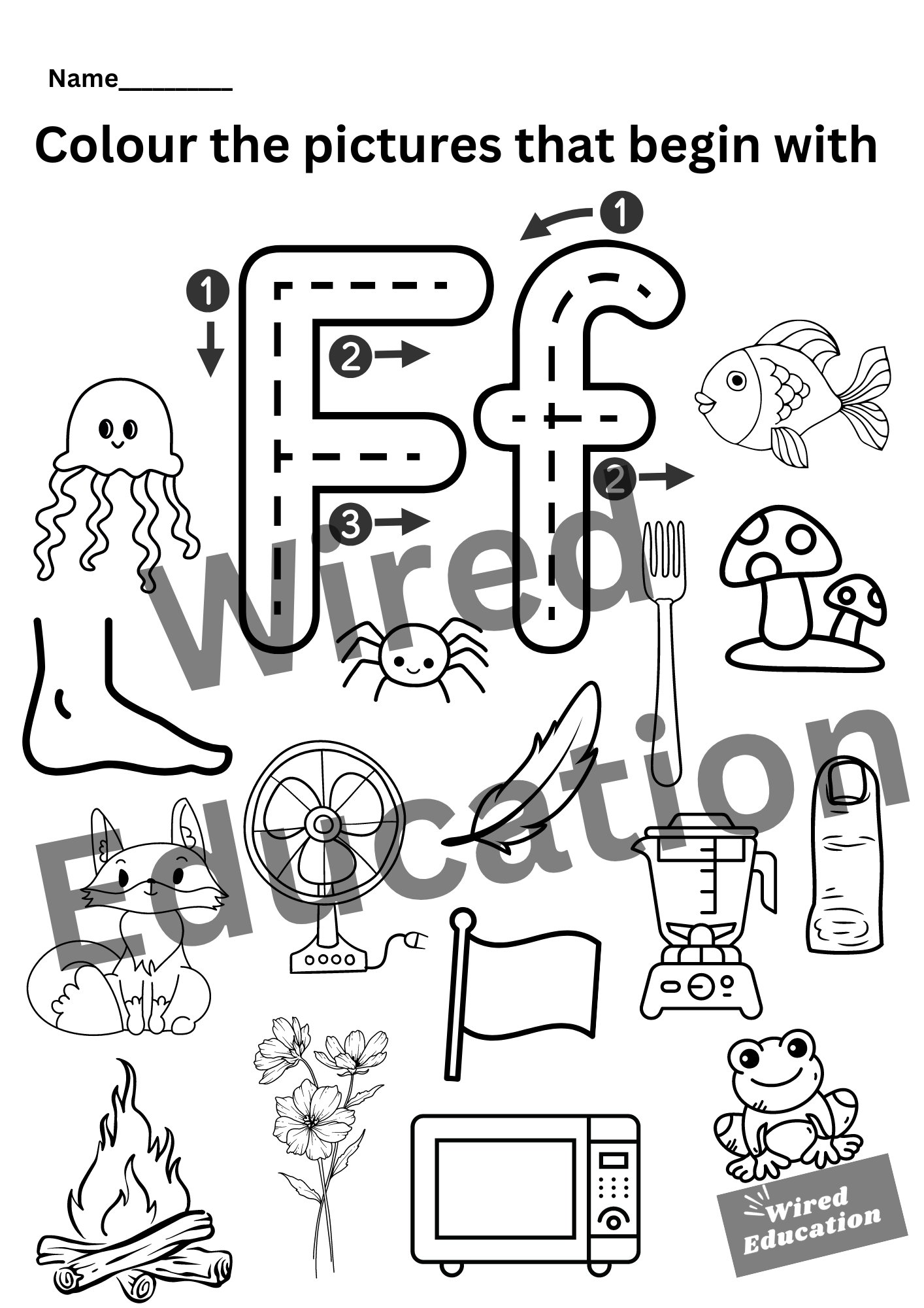 Colour the pictures that start with F